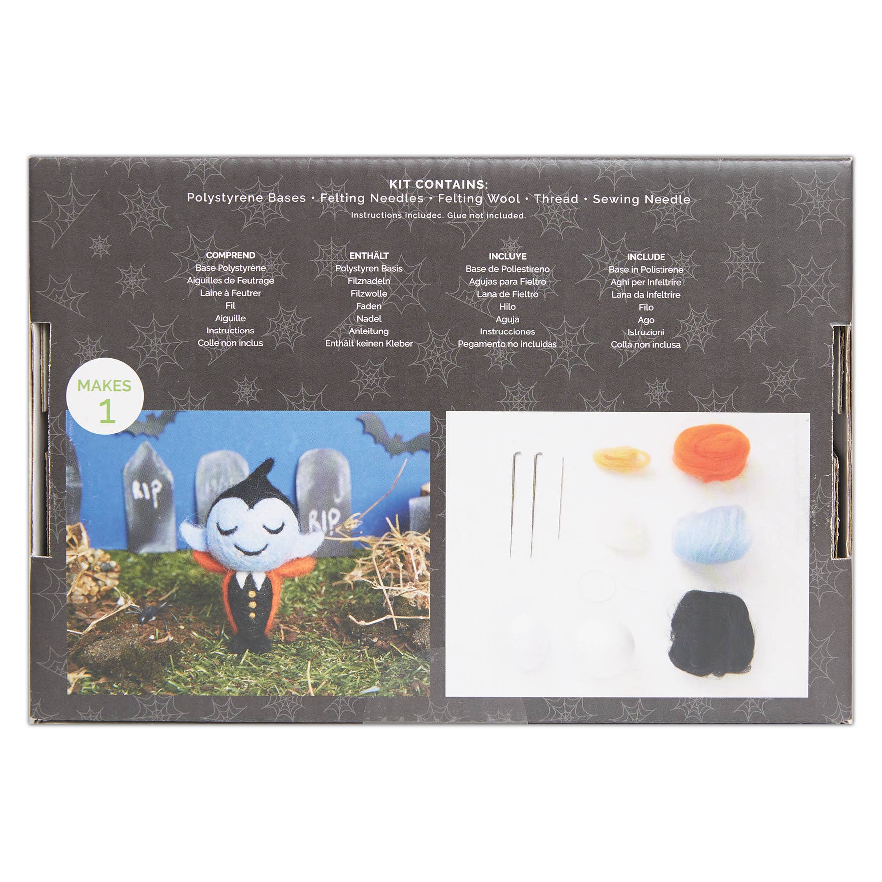 CONTENTS Needle felting embroidery character kit features polystyrene bases, felting needle, felting wool, pre-cut felt pieces, thread & sewing needle with a handy set of instructions. DIY Halloween craft kit for beginners everything included.
